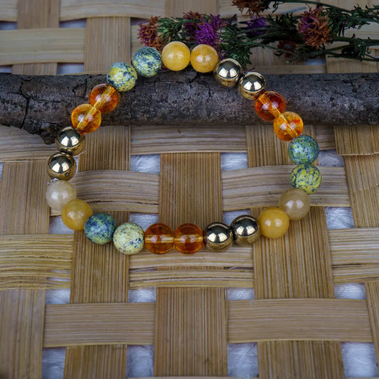 Numerology Number 3 Bracelet | Yellow Aventurine, Serpentine, Citrine & Golden Hematite Crystals for Creativity & Optimism