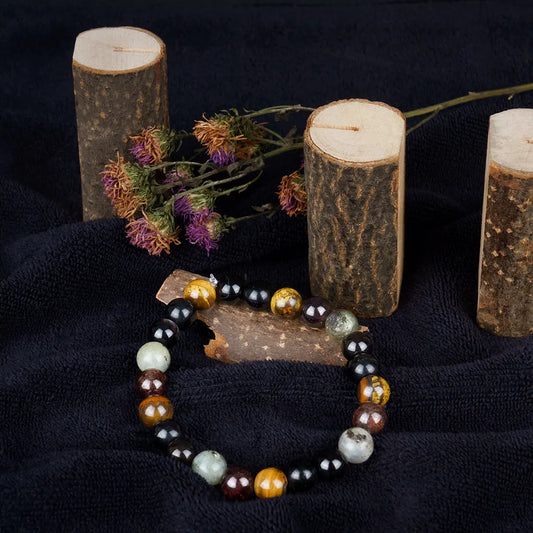 Numerology Number 4 Bracelet | Tiger’s Eye, Black Tourmaline, Hakik, Labradorite & Garnet Crystals for Stability & Strength
