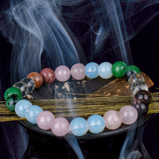 Numerology Number 6 Bracelet | Opal, Rose Quartz, Clear Quartz, Ruby Zoisite & Rhodonite Crystals for Love & Harmony