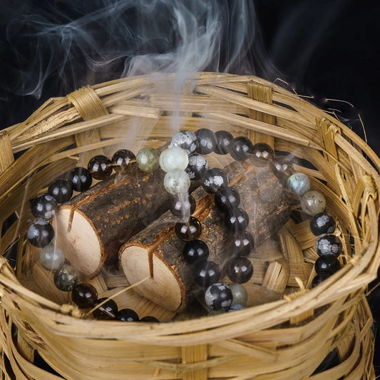 Numerology Number 7 Bracelet | Labradorite, Smoky Quartz, Black Tourmaline & Snowflake Obsidian Crystals for Intuition & Protection
