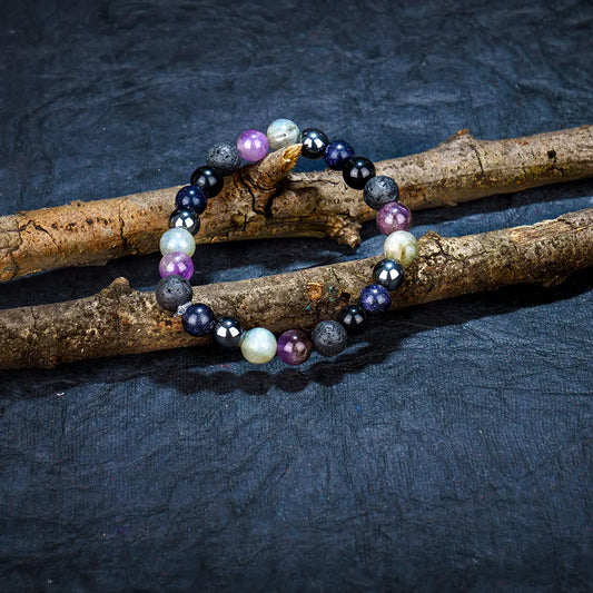 Numerology Number 8 Bracelet | Lava, Amethyst, Labradorite, Silver Hematite, Blue Goldstone & Black Tourmaline Crystals for Power & Protection