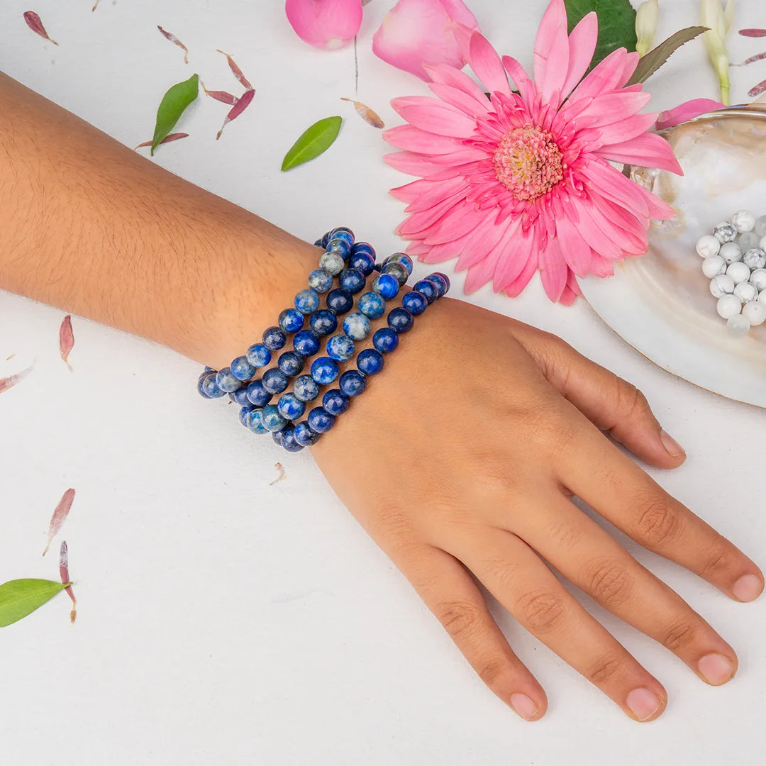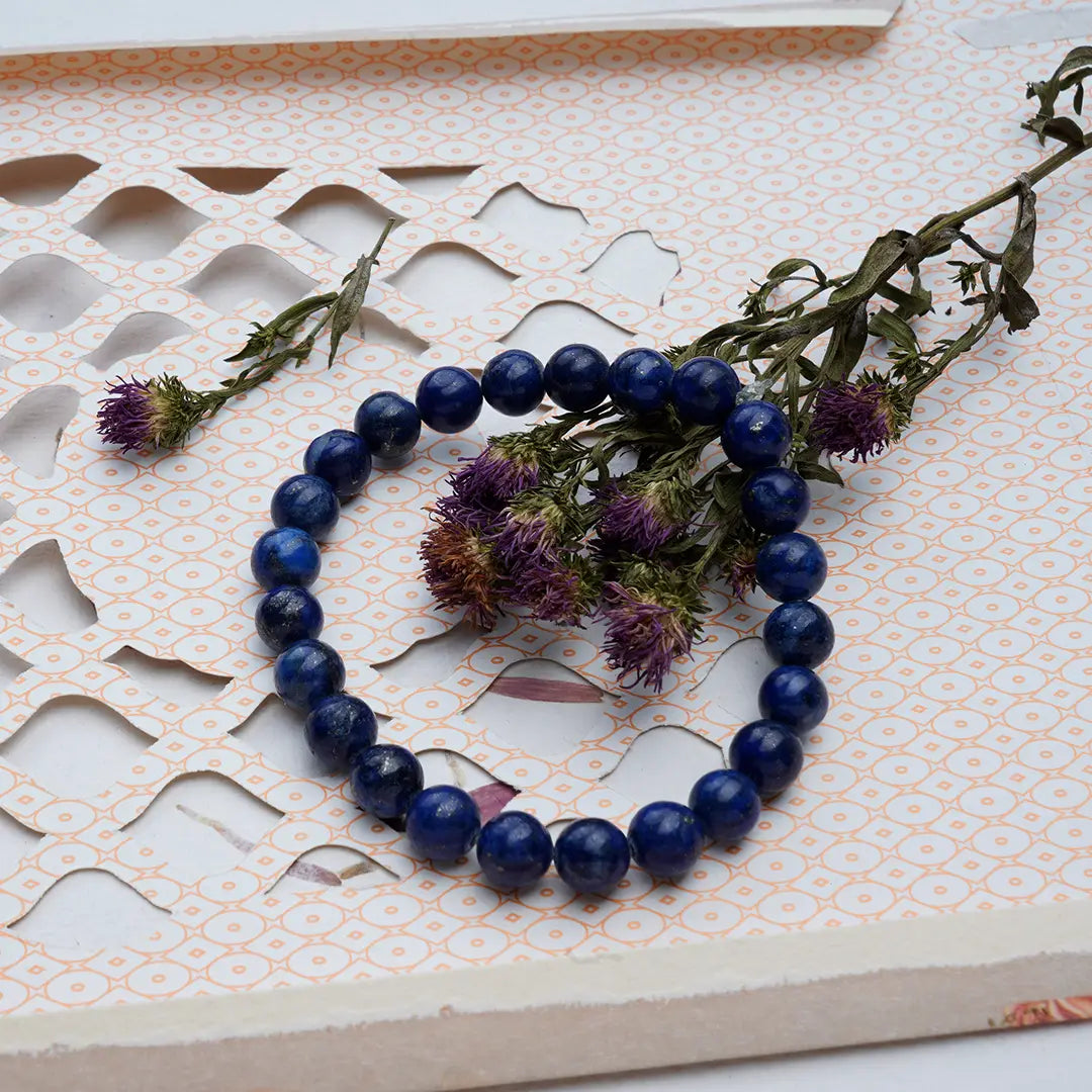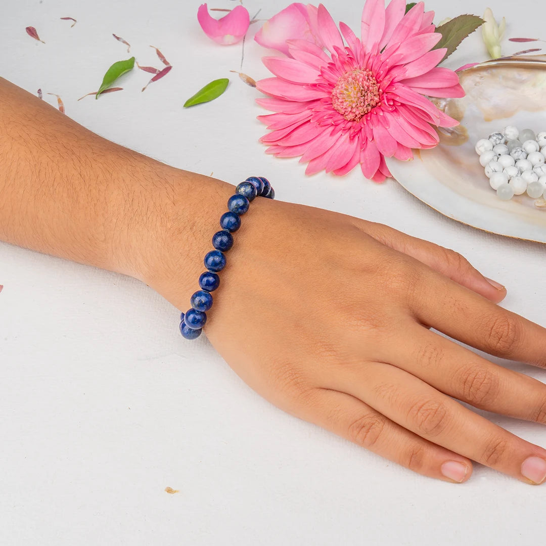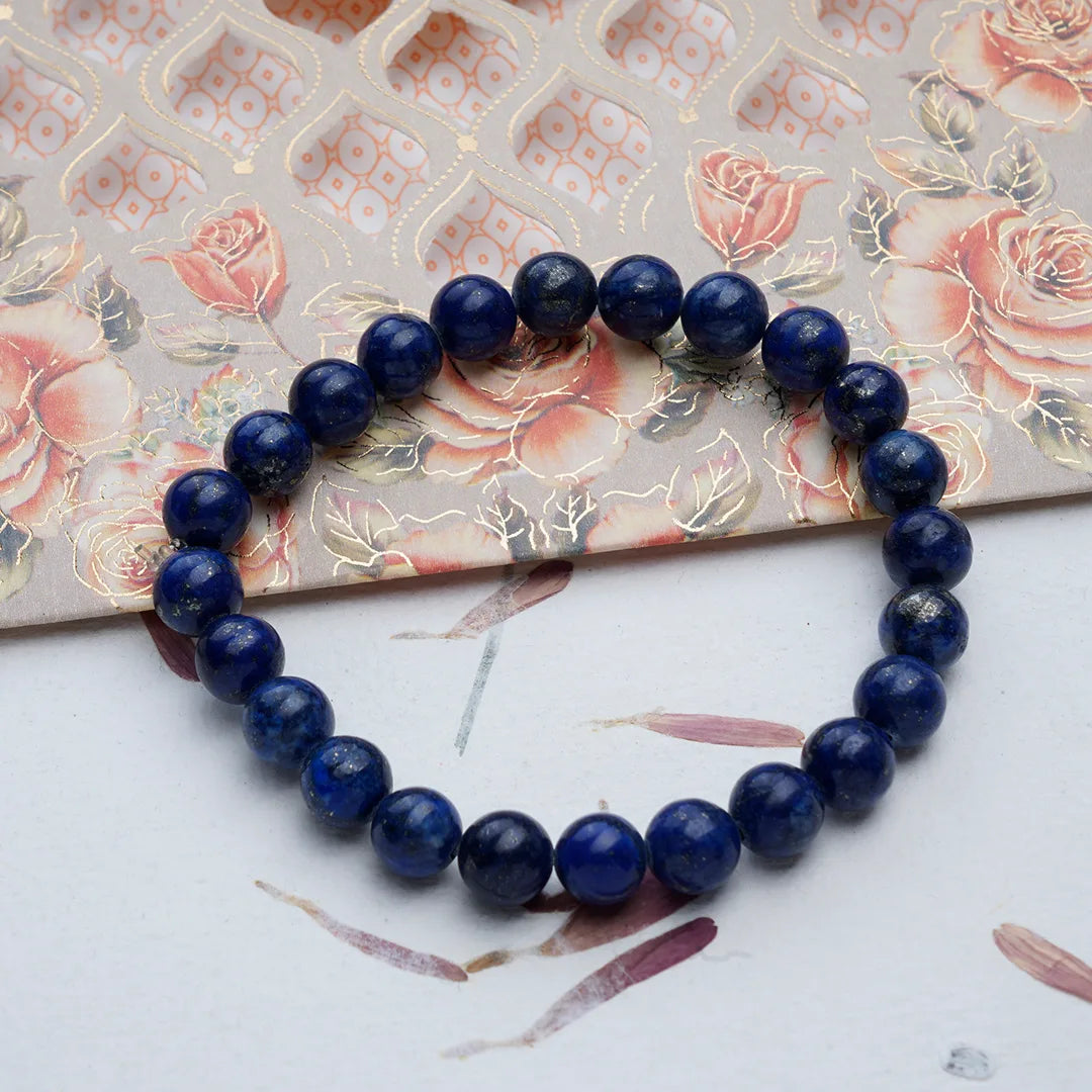 Enhance your wisdom and truth with our Lapis Lazuli Bracelet. Available in 6mm and 8mm beads, and small, medium, and large sizes. Known for its deep blue color and powerful spiritual properties, promoting inner peace and clarity. Includes free lab certification and shipping within India.